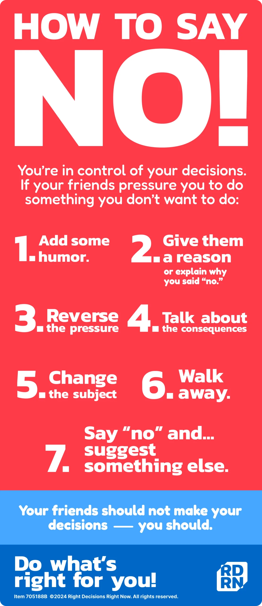 When you are feeling pressure to use tobacco and nicotine products because they are being offered to you, you can refuse in any number of ways. Check out the techniques and examples on the next pages and on the poster on this page.